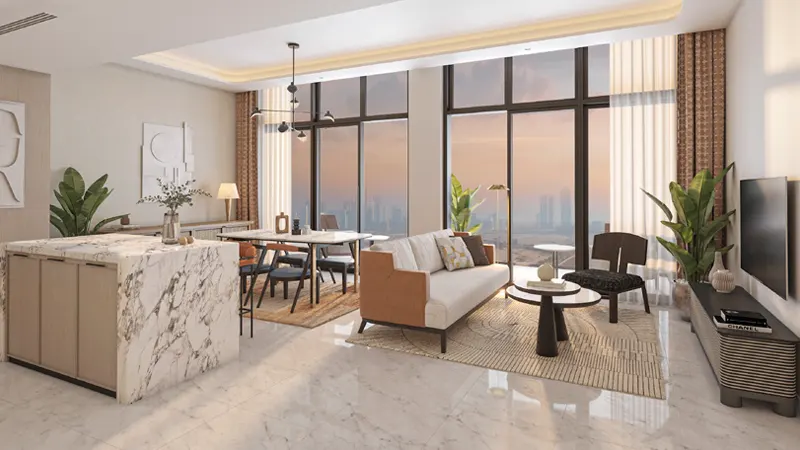 The breathtaking panoramic views here are truly a sight to behold. Dubai Creek, with its serene waters, gracefully mingles with the dynamic city skyline and lush landscapes, creating a picturesque backdrop that complements the contemporary design of the development. These views alone are enough to make this a remarkable residential choice.
