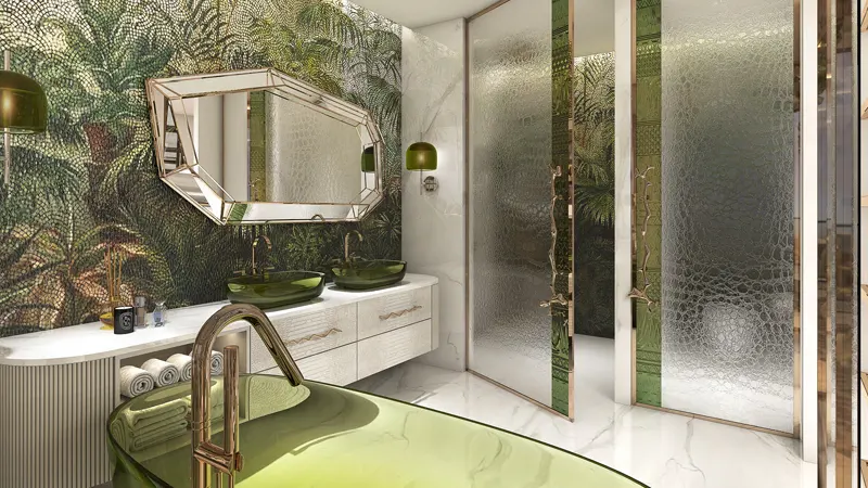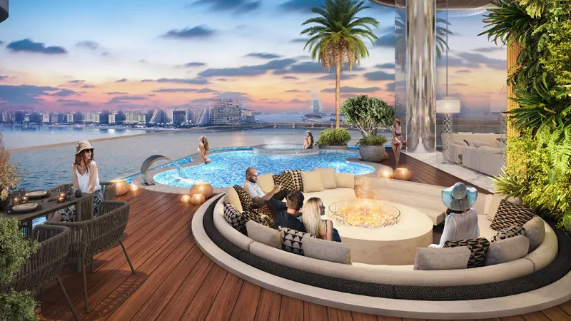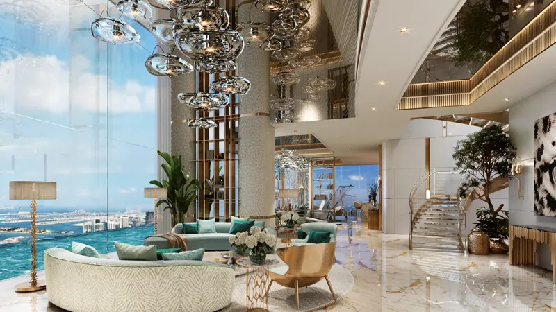 As residents ascend to new heights, they are welcomed into a world where the extraordinary becomes ordinary. The towers’ podium level offers a maritime getaway with a water maze, Jungle Oasis, and a Wave pool. The rooftop infinity pools provide breathtaking views, complemented by a state-of-the-art opera pavilion overlooking the Arabian Gulf.